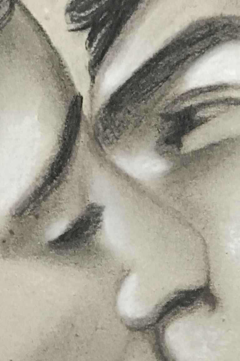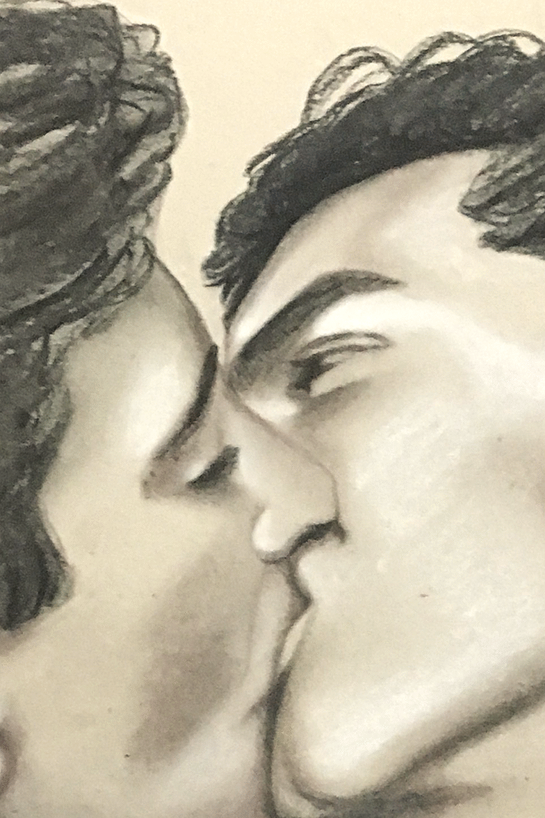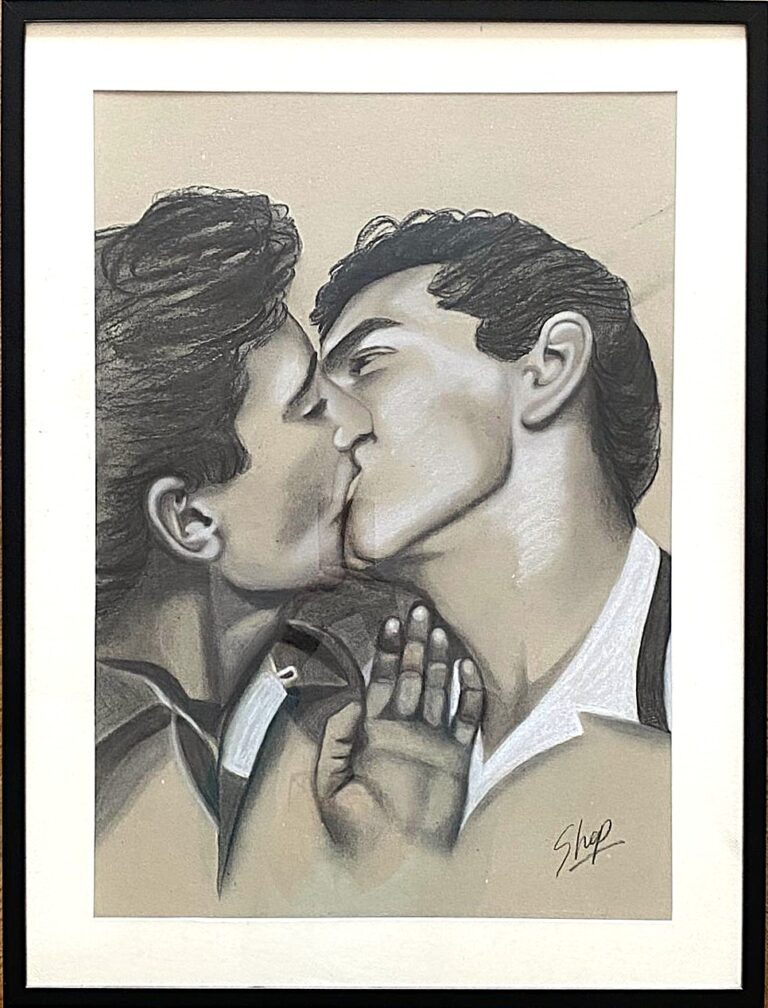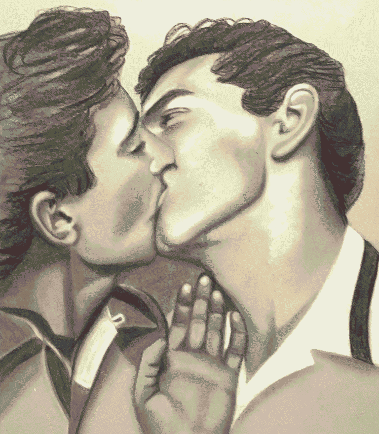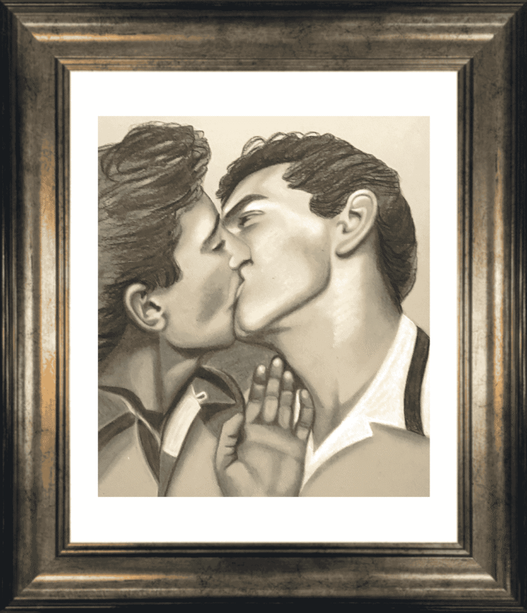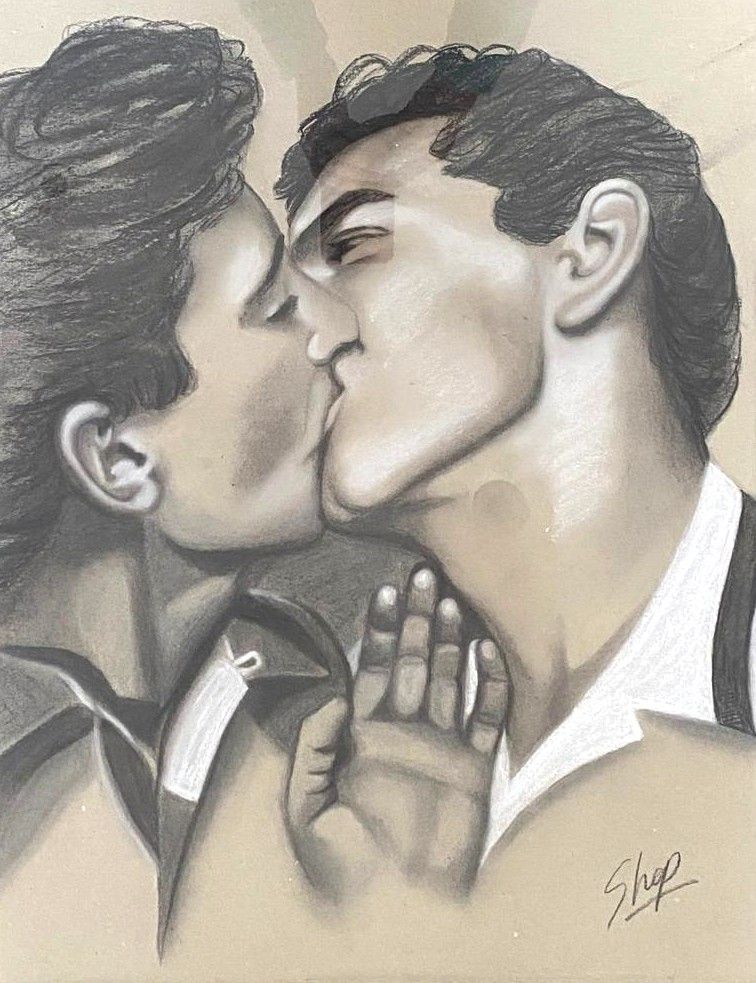 This is a tender moment captured in a time when gay love was a hidden shameful secret. These two very dapper gentleman threw caution to the wind when they shared this kiss. The intimacy of the moment stronger than the worries of any judging gaze.