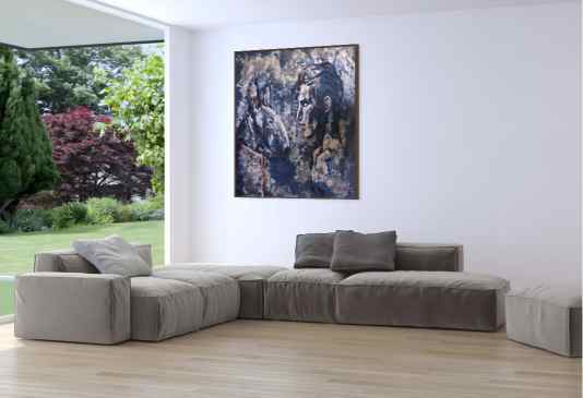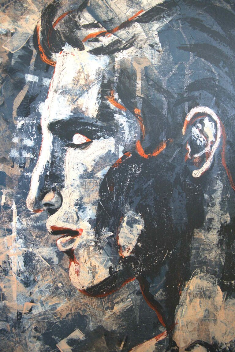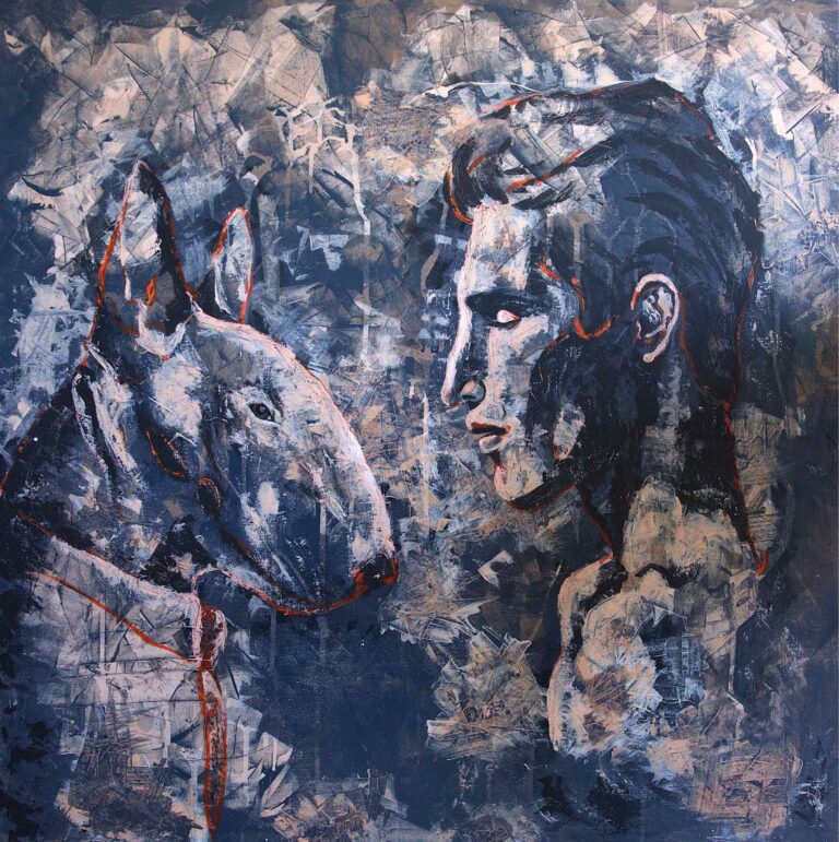 A strong facial profile is so striking, in humans as well as animals. A cute button noes is sweet on babies and plain on adults, give me a strong Roman Nose any day. This painting shows the beauty of a human and canine profile. We are different, yet we are the same.